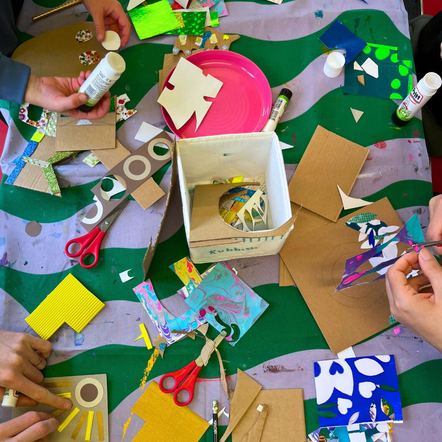 - Collage with printed papers and recycled materialsI often repeat sessions so you and your child can revisit, refine, and develop your skills.